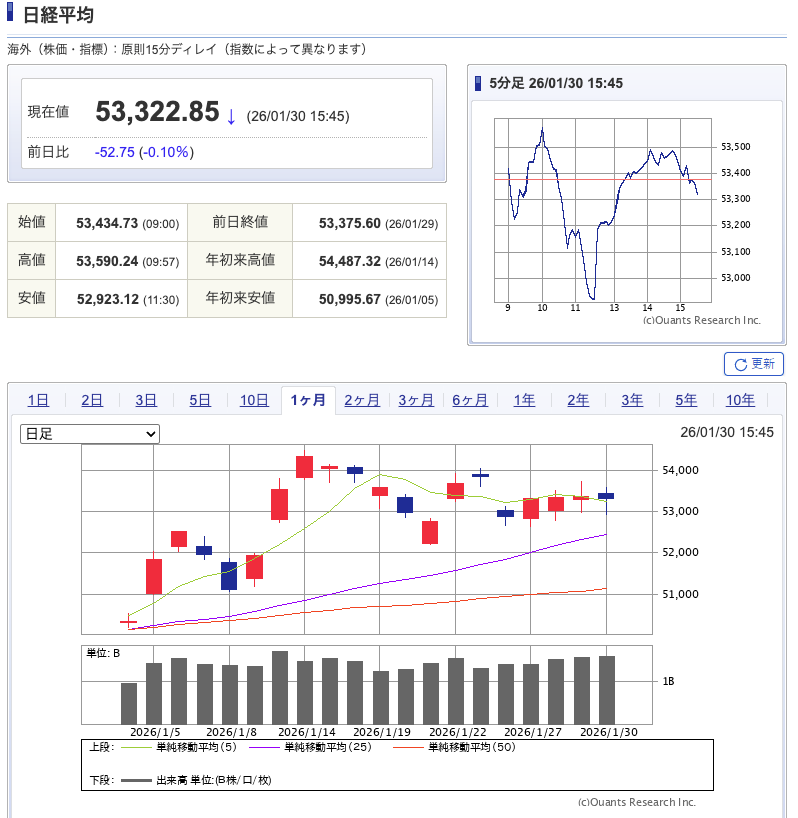 ※ 2026年1月30日現在の株価を基準に一括ツールでダウンロードしたものです。株価は日々変動しているため、上記情報と異なる可能性がございます。あらかじめご了承ください。