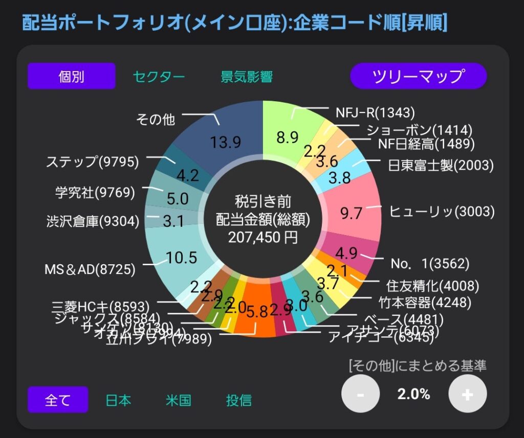 2026年2月時点の年間配当金は207,450円となりました。